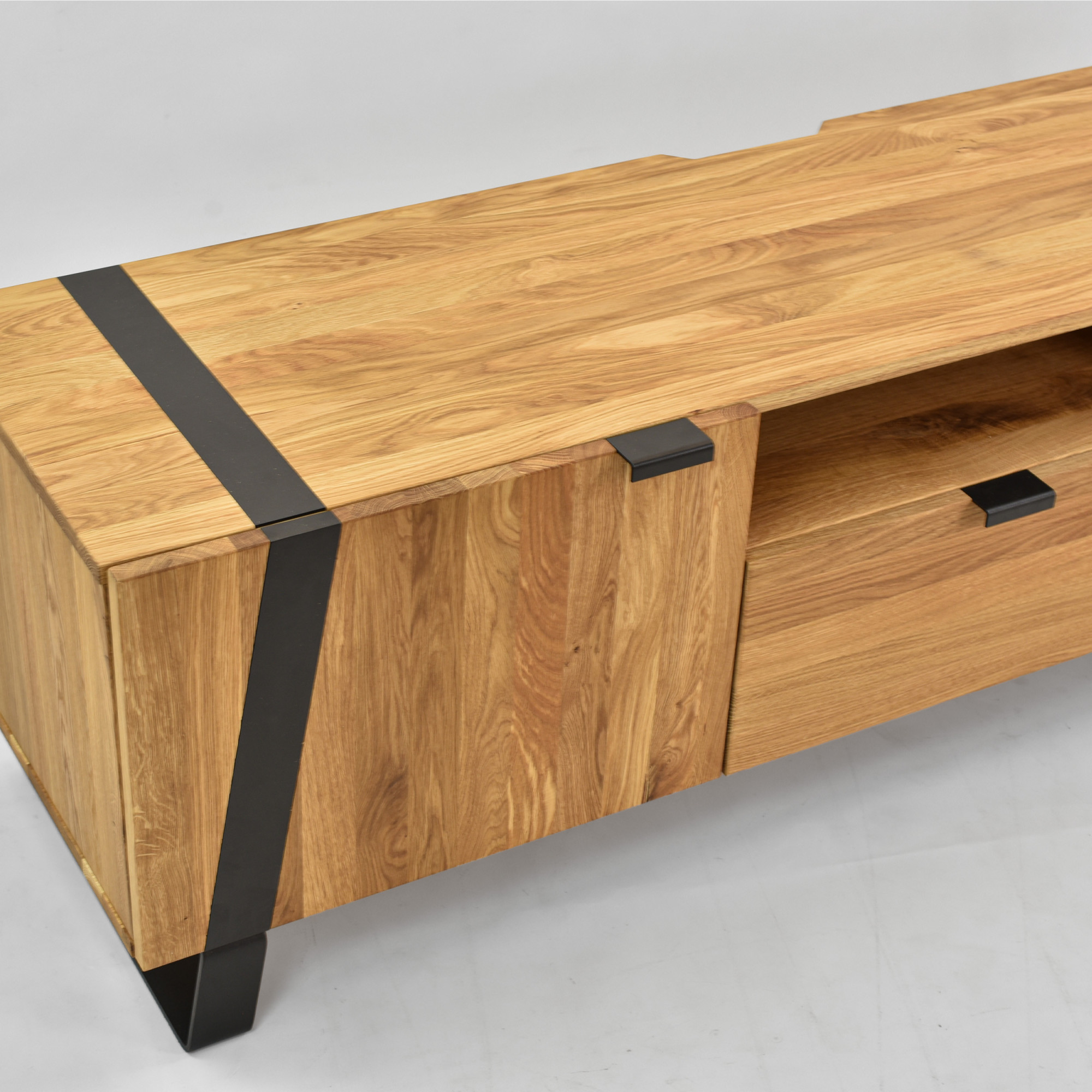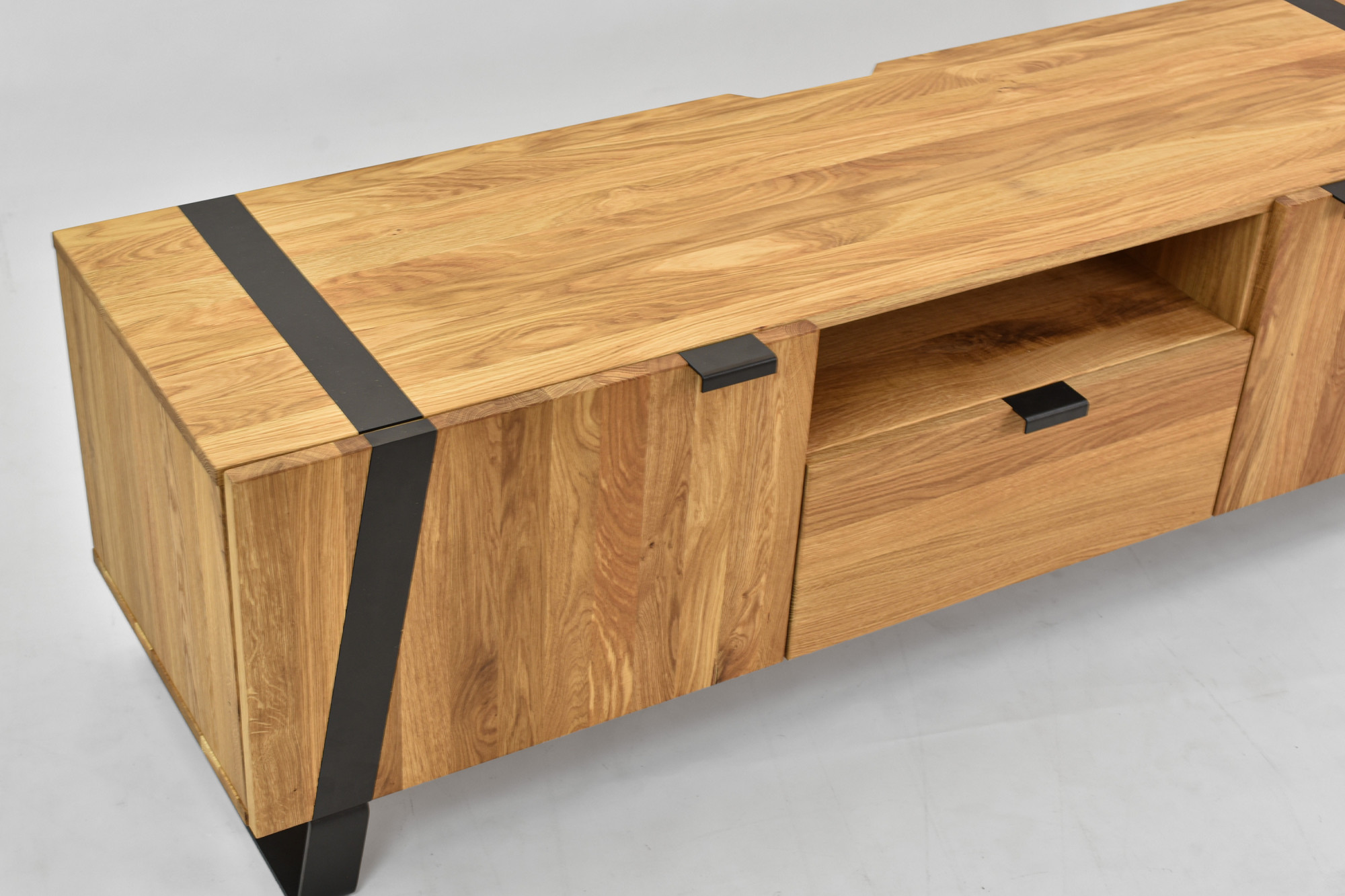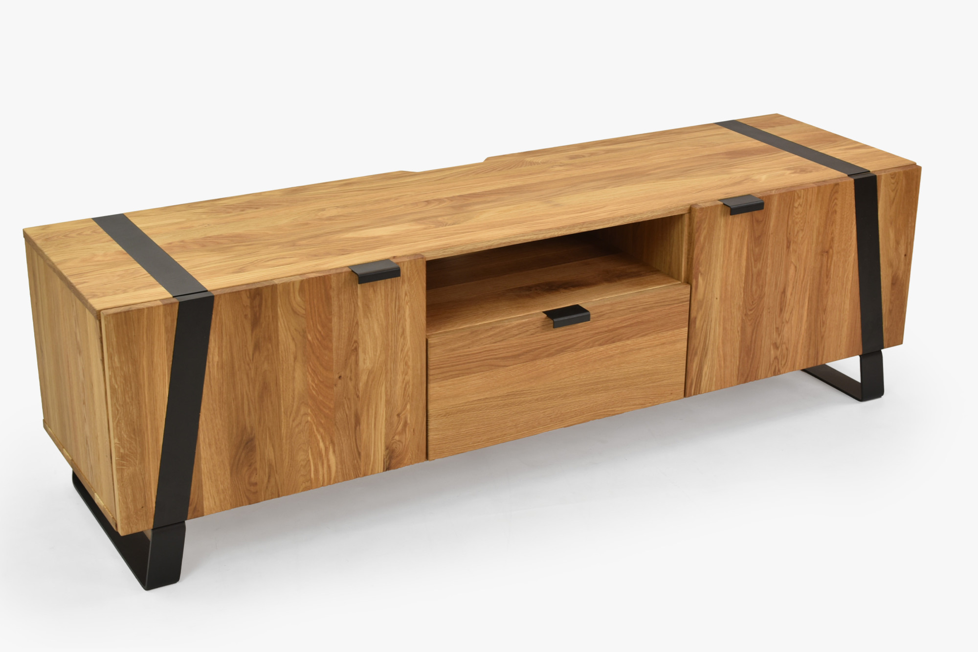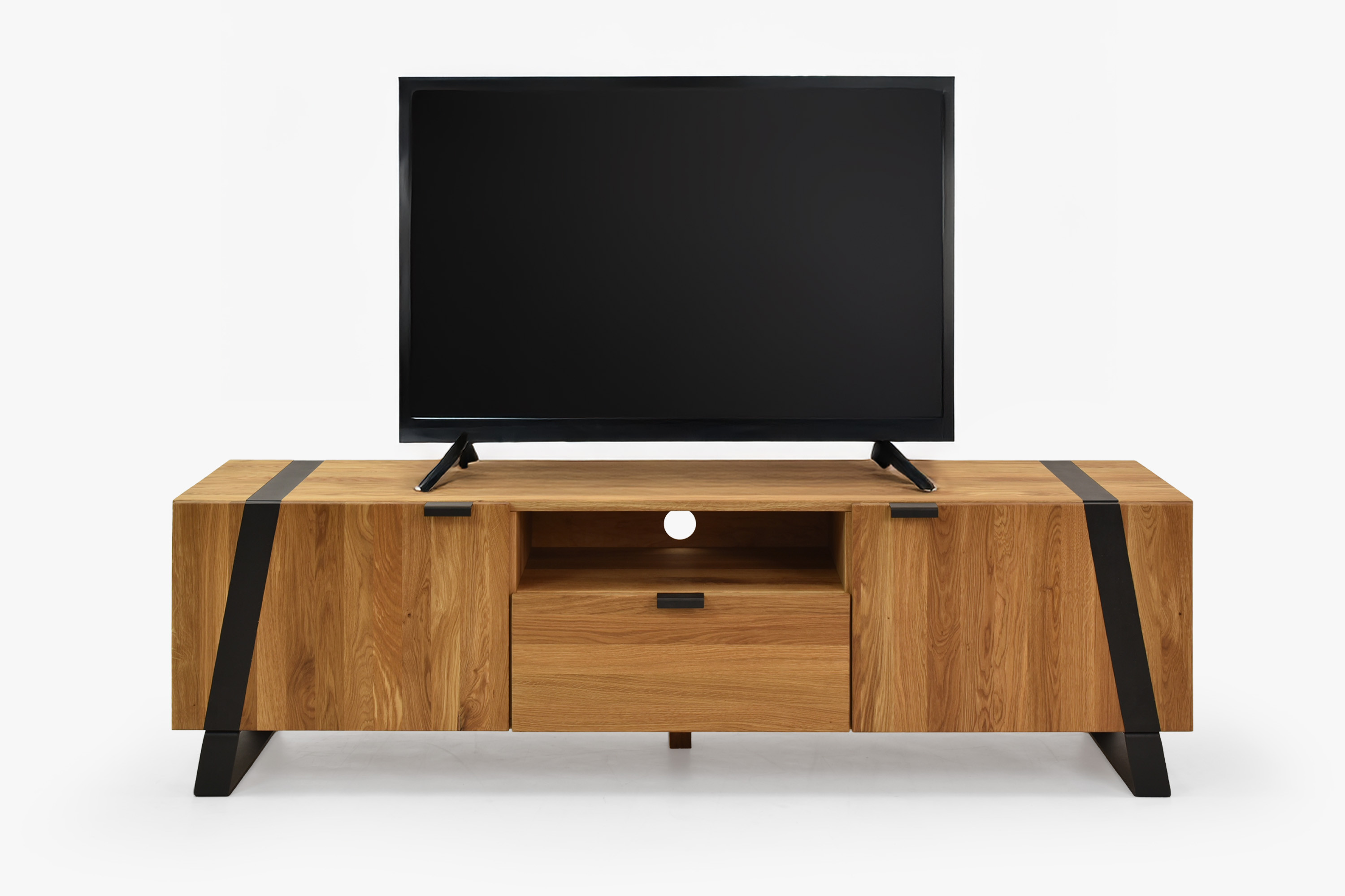Dubová televízna komoda na kovových nohách