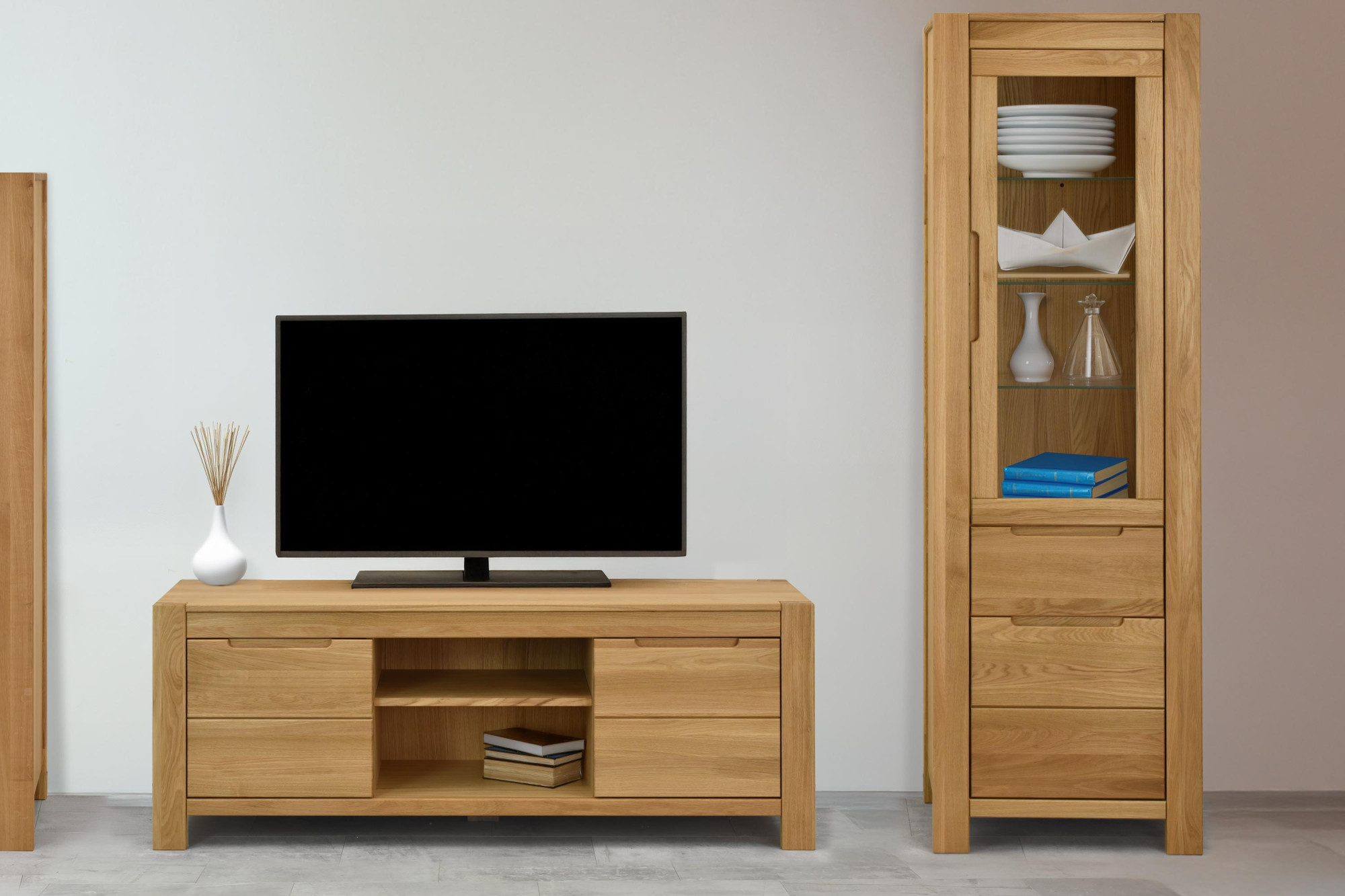 Horná doska z masívu je testovaná na rovnomerné zaťaženie 40 kg, takže bez problémov udrží aj veľkú televíziu.