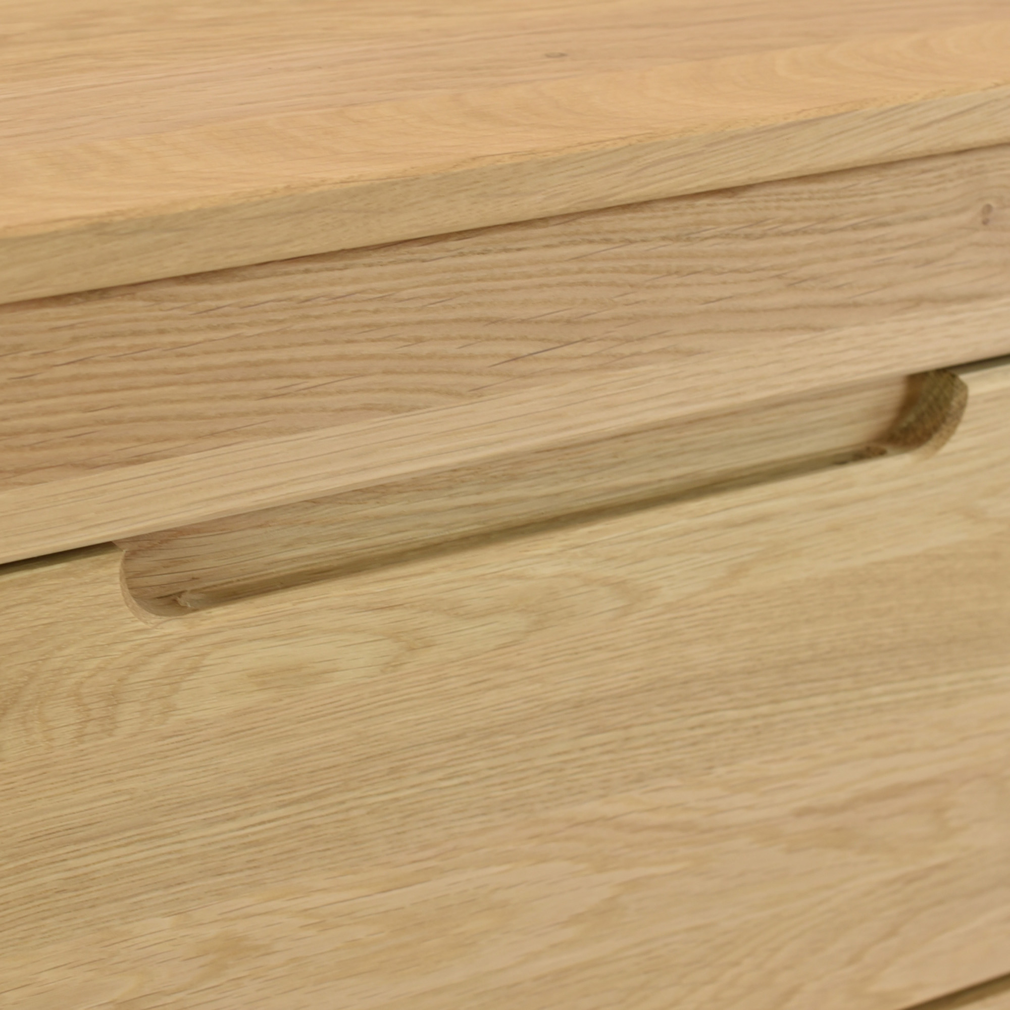 Čelné plochy, horná doska a jemne skosené nohy sú vyrobené z masívneho duba s výraznou kresbou, boky a vnútorné segmenty potom z kvalitnej dubovej dyhy, aby si komoda zachovala pevnosť a zároveň príjemnú hmotnosť. Ochranný náter z prírodného oleja zvýrazňuje každý letokruh a uľahčuje bežnú údržbu iba suchou handričkou. Použité drevo nesie certifikát FSC, takže máte istotu udržateľného pôvodu. Vďaka jednotnému odtieňu „dub natural“ môžete komodu bez obáv zladiť s ďalším nábytkom Napoleon – vitrínou, policami aj konferenčným stolíkom – a vytvoriť tak harmonický interiér plný tepla a nadčasovej estetiky, ktorý vydrží generácie. Montáž zvládnete za pol hodiny vďaka prehľadnému návodu a predvŕtanému kovaniu. Súčasťou balenia je aj sada filcových podložiek chránia vašu podlahu.