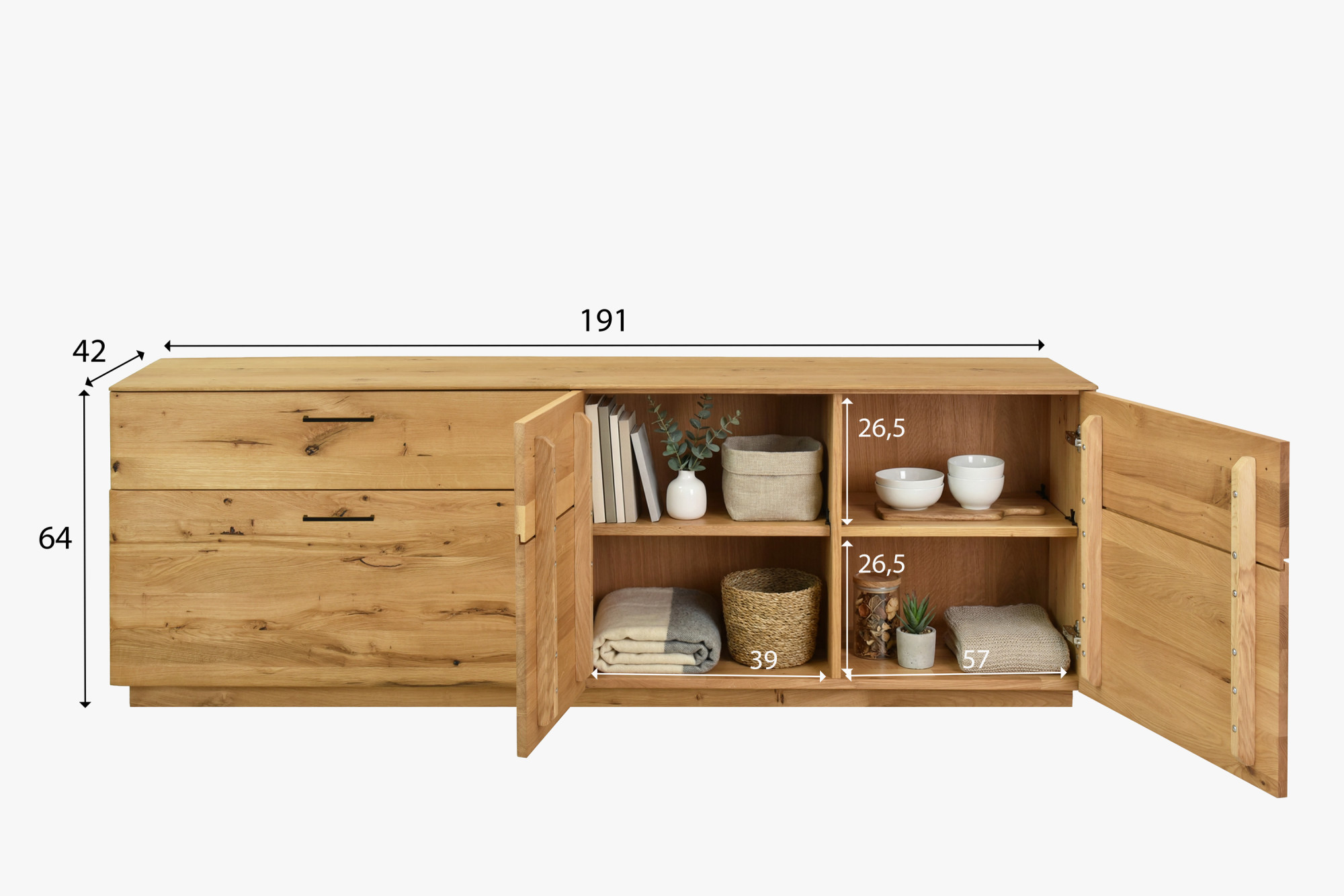 So šírkou 191 cm je komoda vhodná skôr do priestrannejších obývacích izieb alebo jedální. Pred objednaním odporúčame dôkladne zmerať dostupný priestor.