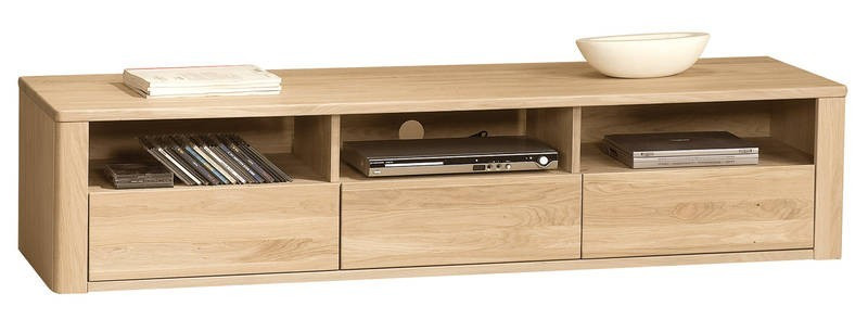 Šírka TV komody je 178 cm, takže na ňu ľahko umiestnite aj väčší televízor. Dubový masív je zárukou pevnosti celej konštrukcie. Úložný priestor televíznej komody je rozčlenený do troch zásuviek a troch otvorených sektorov. Zadná časť je vybavená praktickým otvorom na pretiahnutie káblov k príslušnej elektronike. Zásuvky sú bezúchytkové a opatrené systémom tichého samo-zatvárania soft-stop. Toto riešenie perfektne podčiarkuje minimalistický dizajn nábytku aj celkový dojem kvality a luxusu.