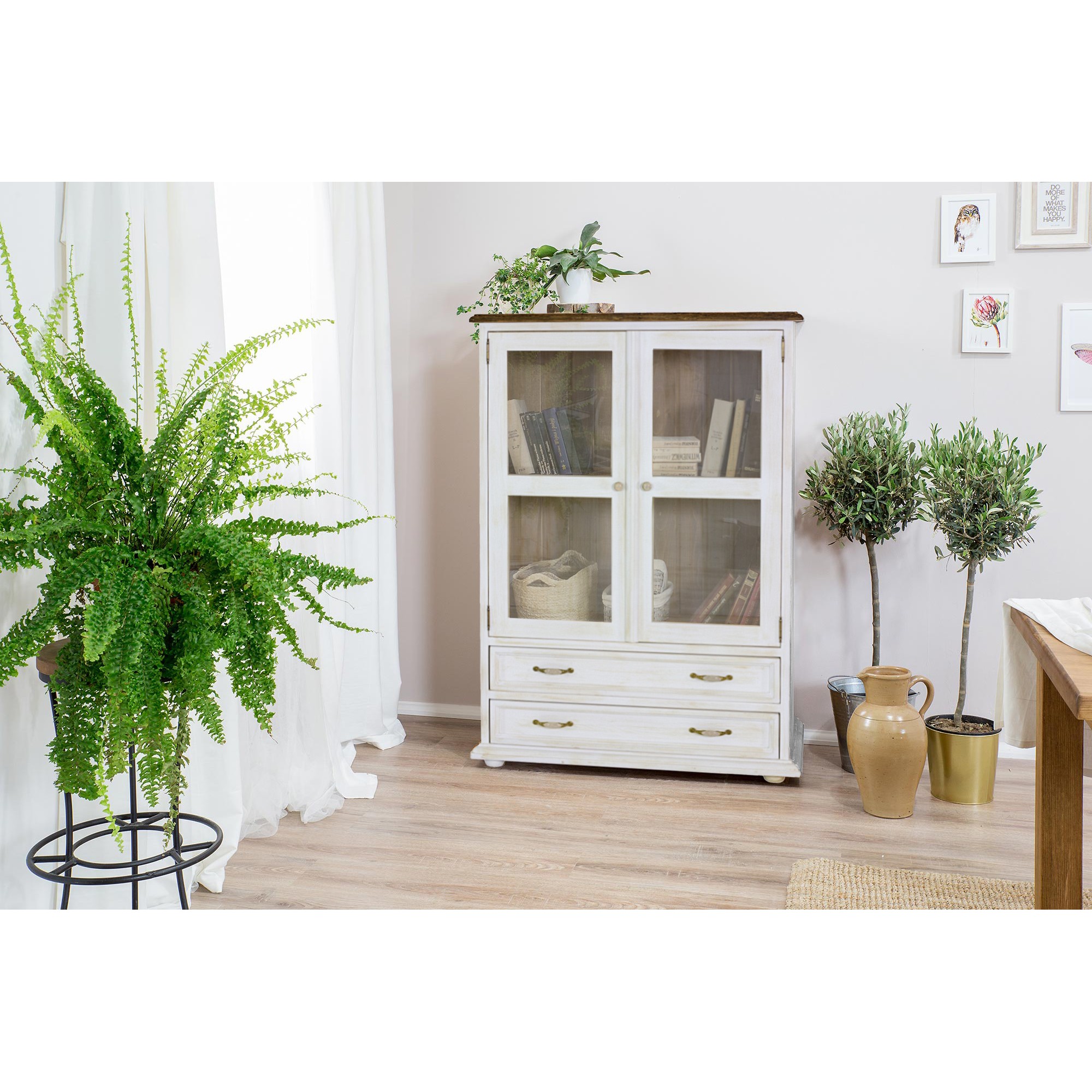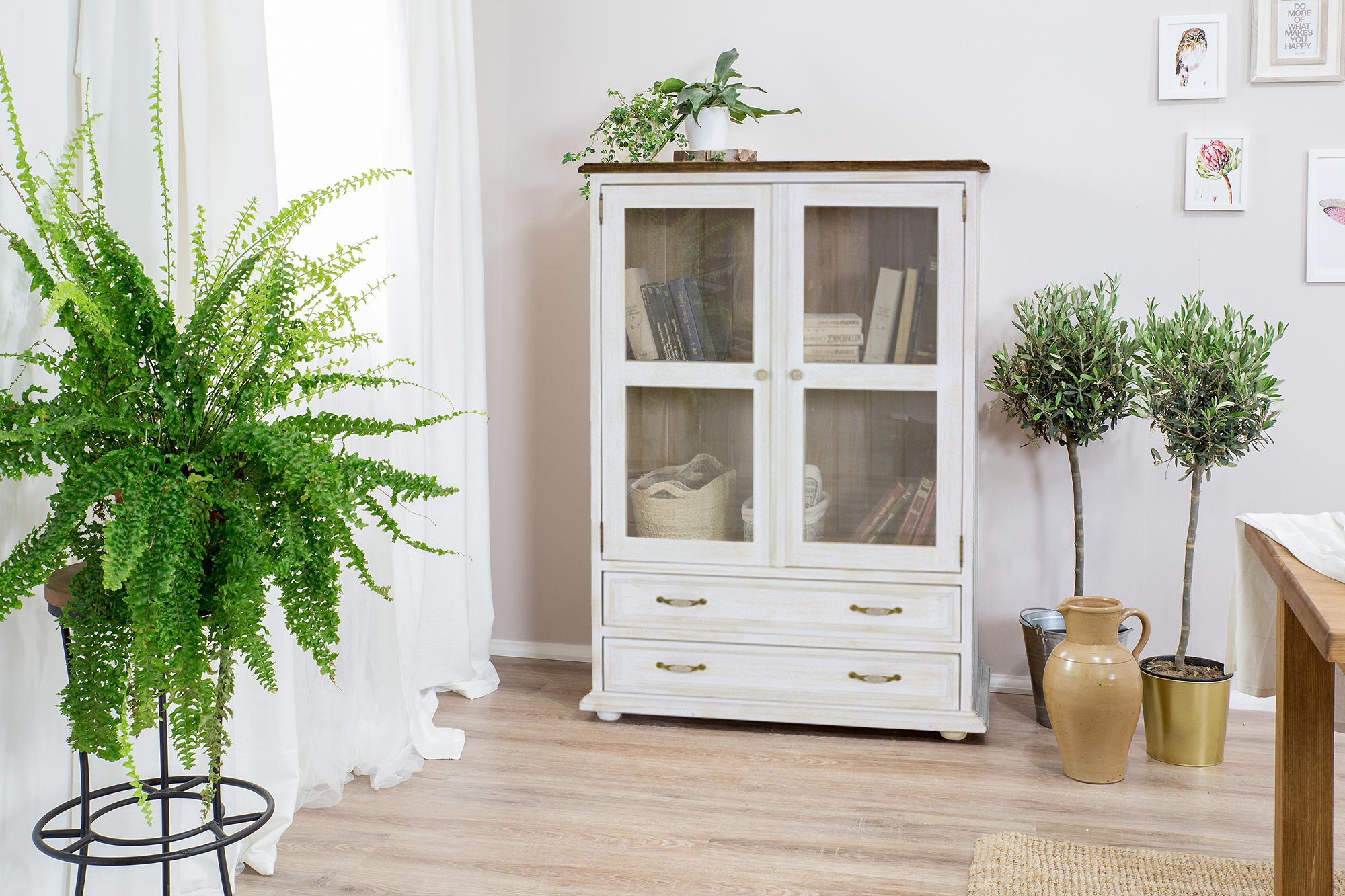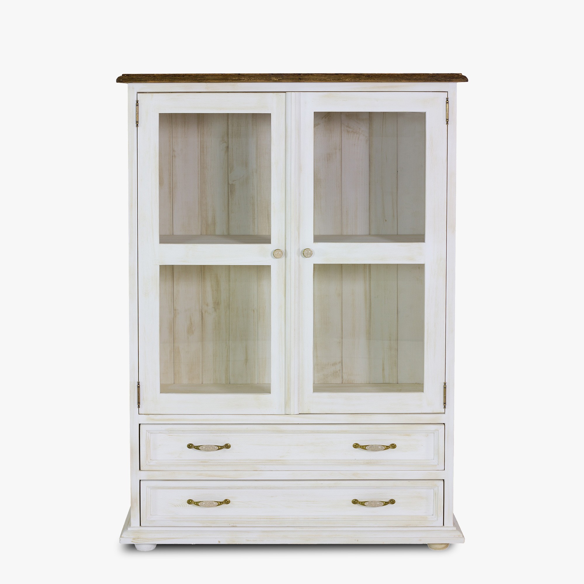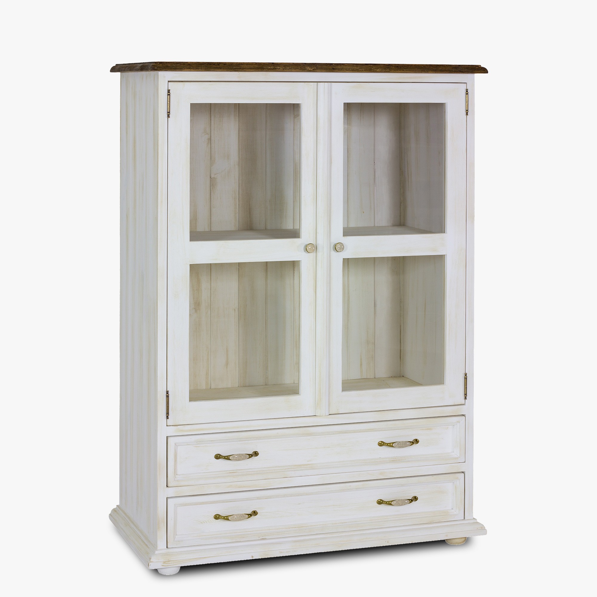 Nádherná drevená vitrína vyrobená v krásnom provensálskom štýle. Vitrína je dvojdverová a má presklené dvierka, je vhodná do jedálne obývačky na čokoľvek, čo chcete vystaviť. Vitrína je vyrobená zo 100% dreva - borovice, vrátane zadnej steny. Krásnym charakterom kolekcie Le buax sú porcelánové úchytky, ktoré vytvárajú komplet a charakter prírodného nábytku z oblasti Provence. Výhodou vitríny sú aj 2 zásuvky v spodnej časti.