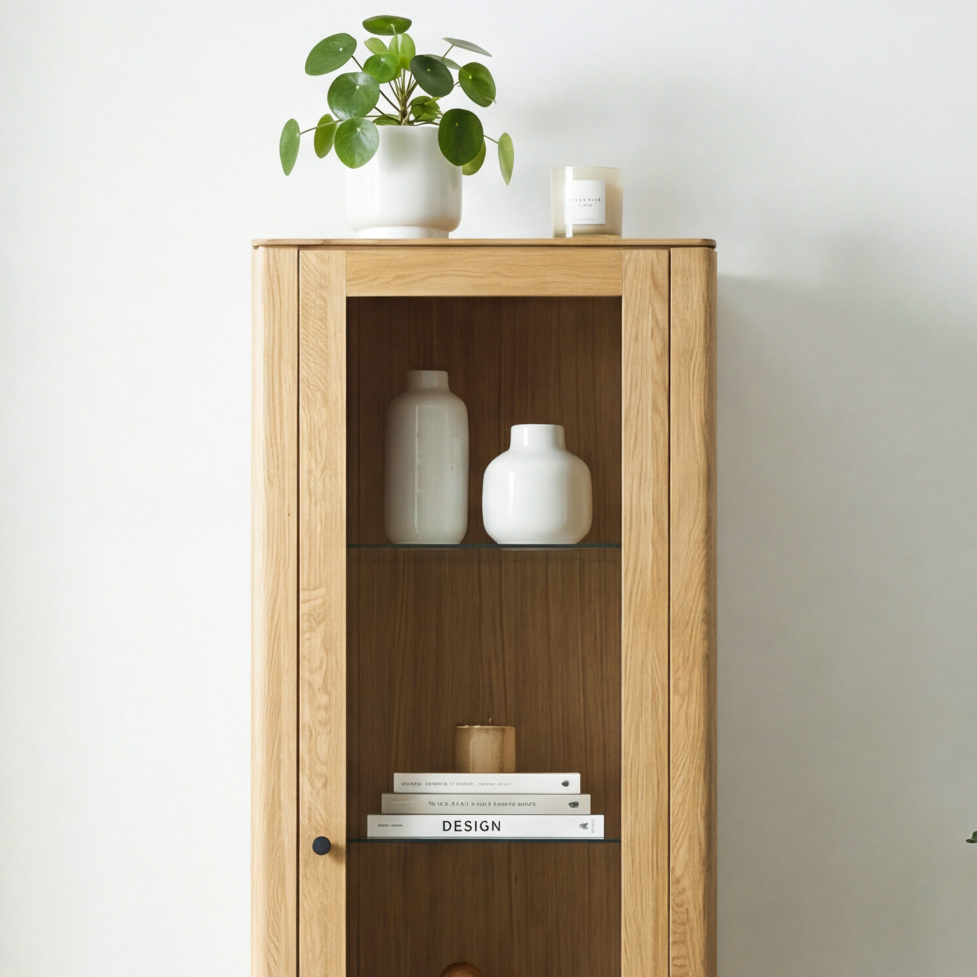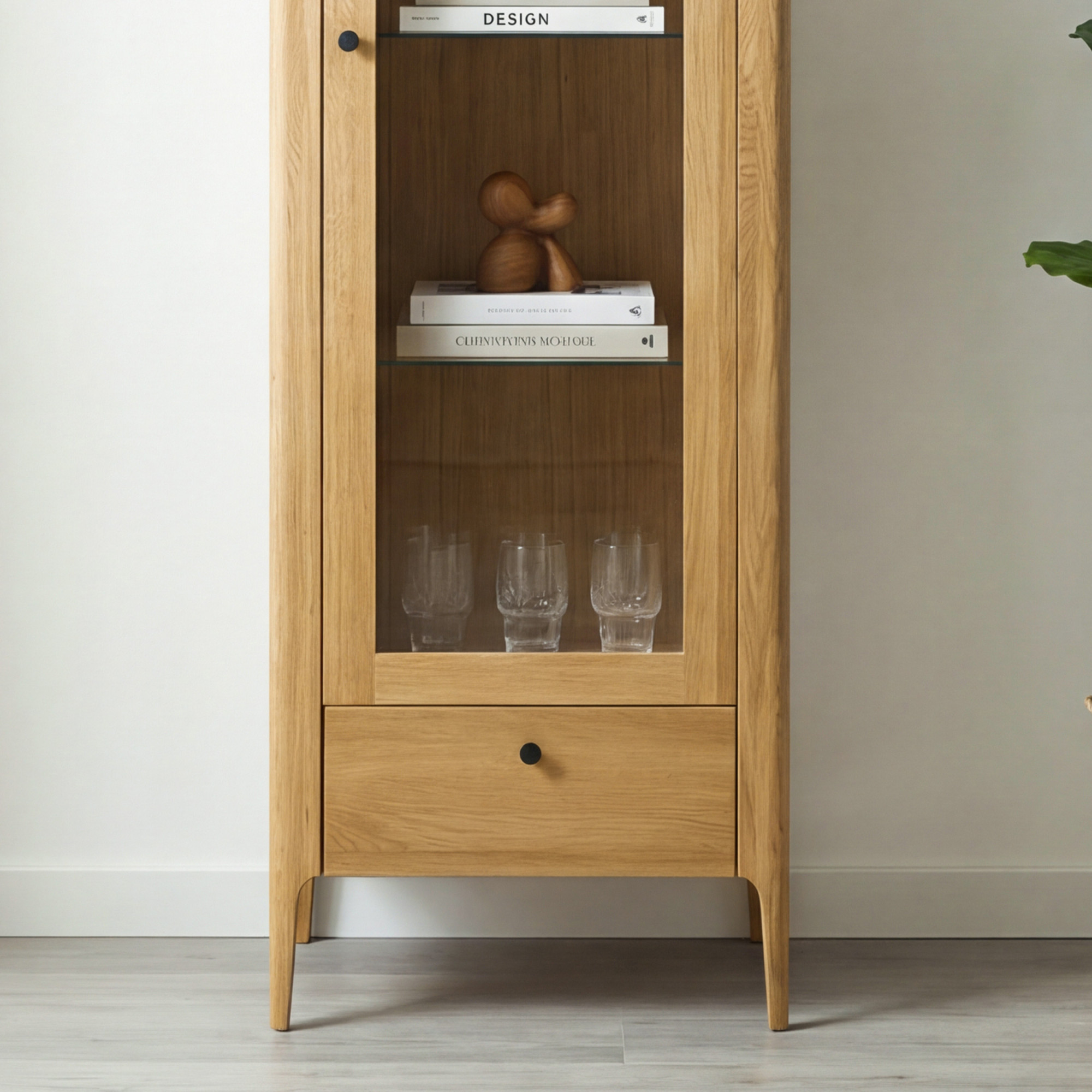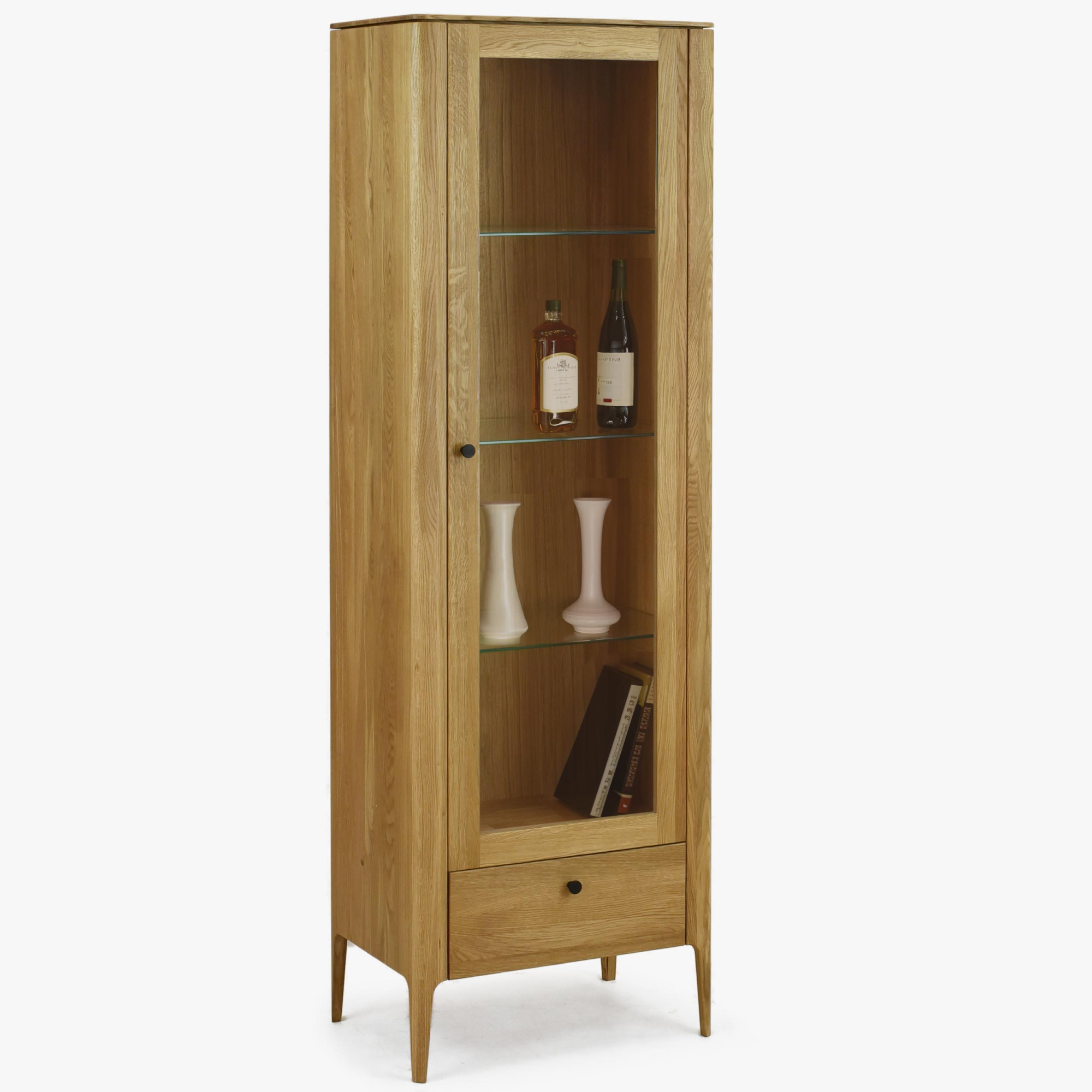 Jednodverová vitrína z masívu z kolekcie Košice je ideálnou voľbou pre každú domácnosť, ktorá hľadá kvalitný nábytok z prírodného dreva. Táto vitrína je vyrobená z masívneho dubového dreva, ktoré prináša do vášho interiéru eleganciu, prírodnú krásu a dlhú životnosť. Charakteristickým znakom série Košice je luxusný vzhľad a vysoká kvalita spracovania. Vitrína je navrhnutá s ohľadom na moderný dizajn, všetky rohy sú zaoblené, čo prispieva k bezpečnosti a estetickej hodnote nábytku. Nožičky vitríny sú tiež zaoblené, čo dodáva nábytku ľahkosť a umožňuje jednoduché upratovanie pod ňou.