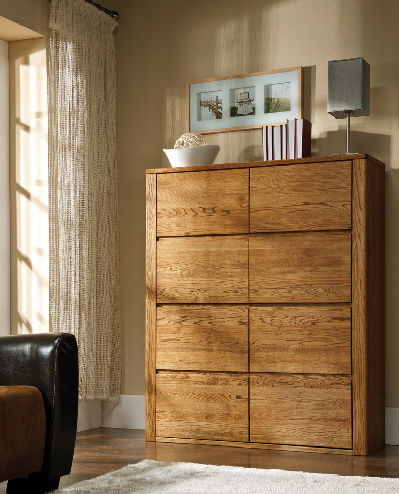Nábytok je z kolekcie Nice, kde nájdete komody, TV stolíky, vitríny. Nábytok do jedálne a obývačky dostupný v troch farbách dub olej naturálny, dub bianco a dub v farbe orech. Zobraziť celú kolekciu tu.
