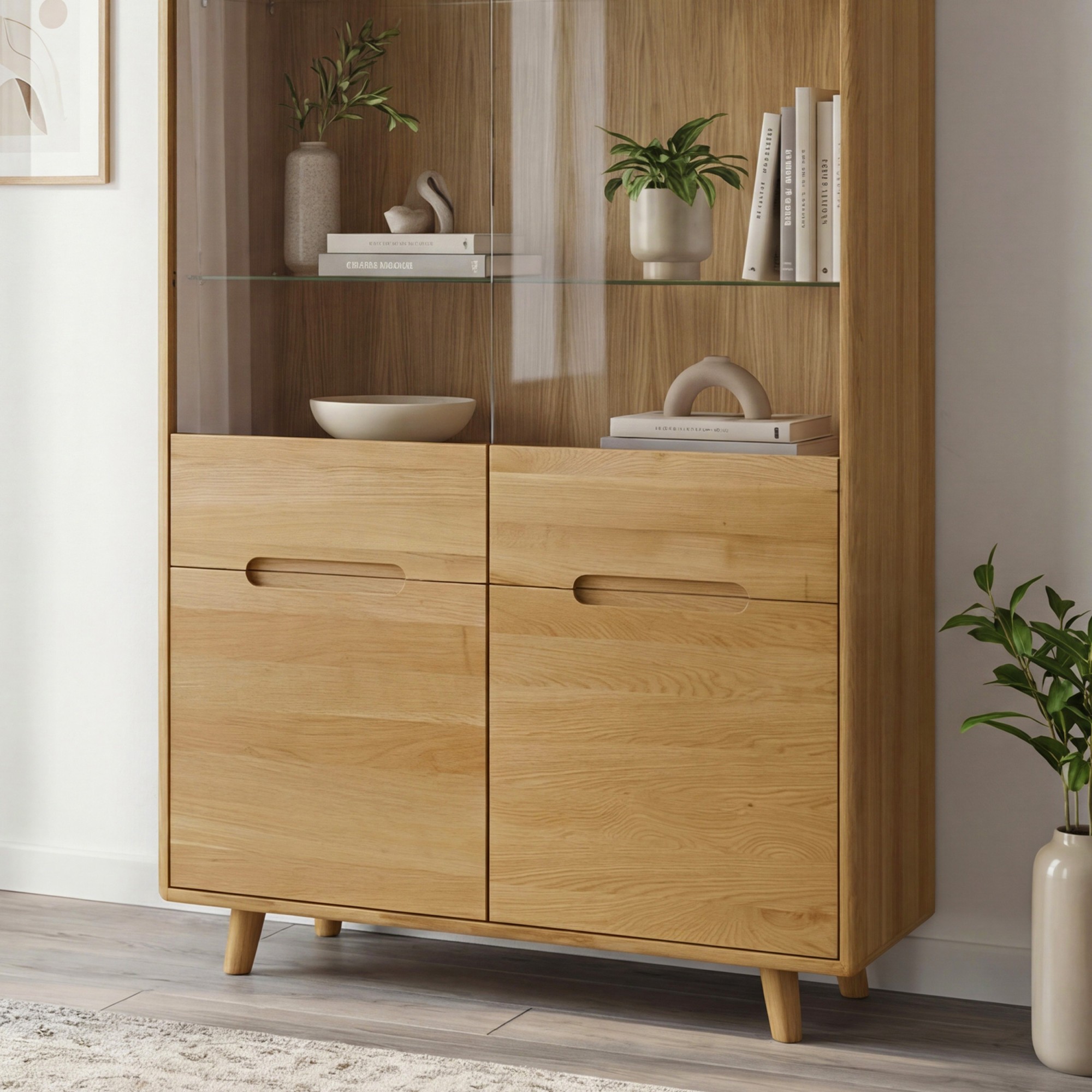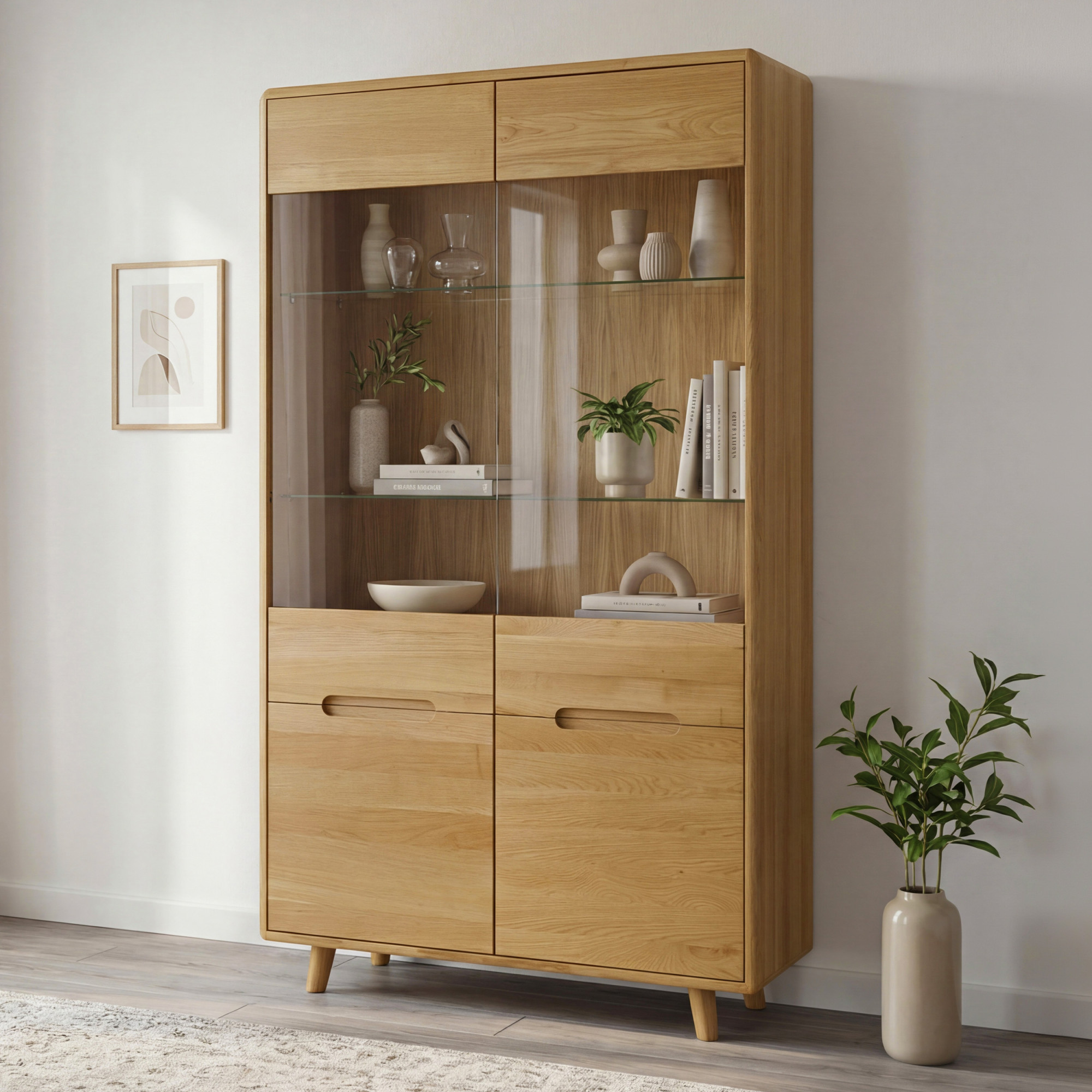 Dvojdverová dubová vitrína so sklom Bratislava v škandinávskom dizajne