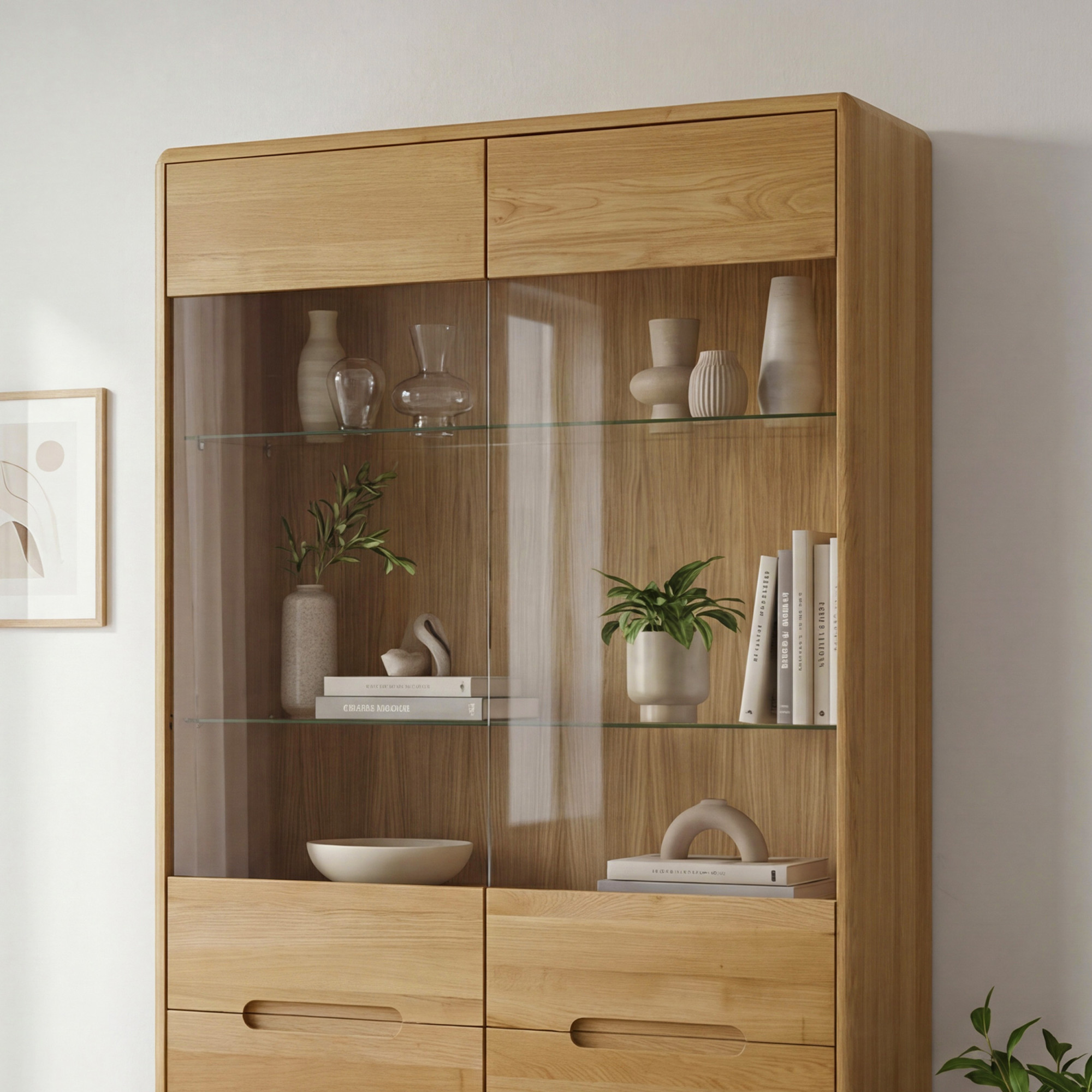 - Presklené dvierka – ideálne na vystavenie dekorácií, riadu alebo kníh, dodávajú nábytku ľahkosť a eleganciu.