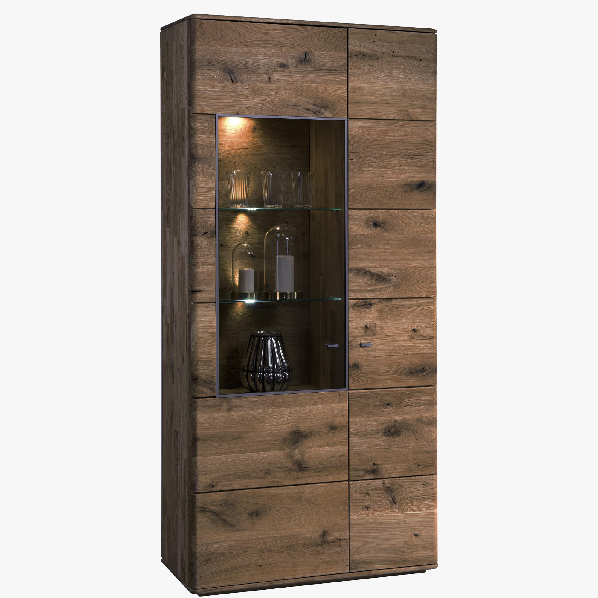 Vysoká úzka komoda širšia s presklenou časťou, TYP 12 Texas farba dub pálený
