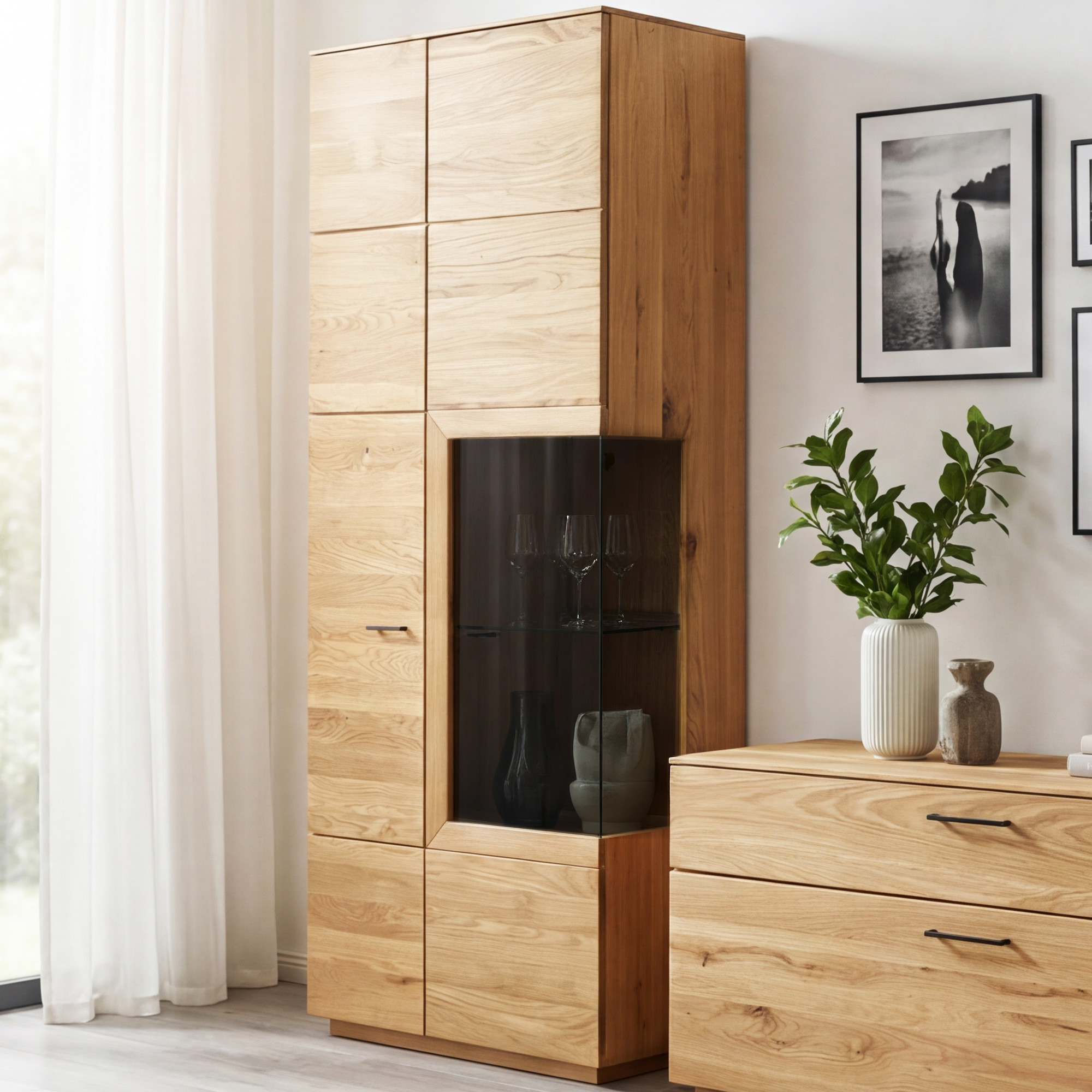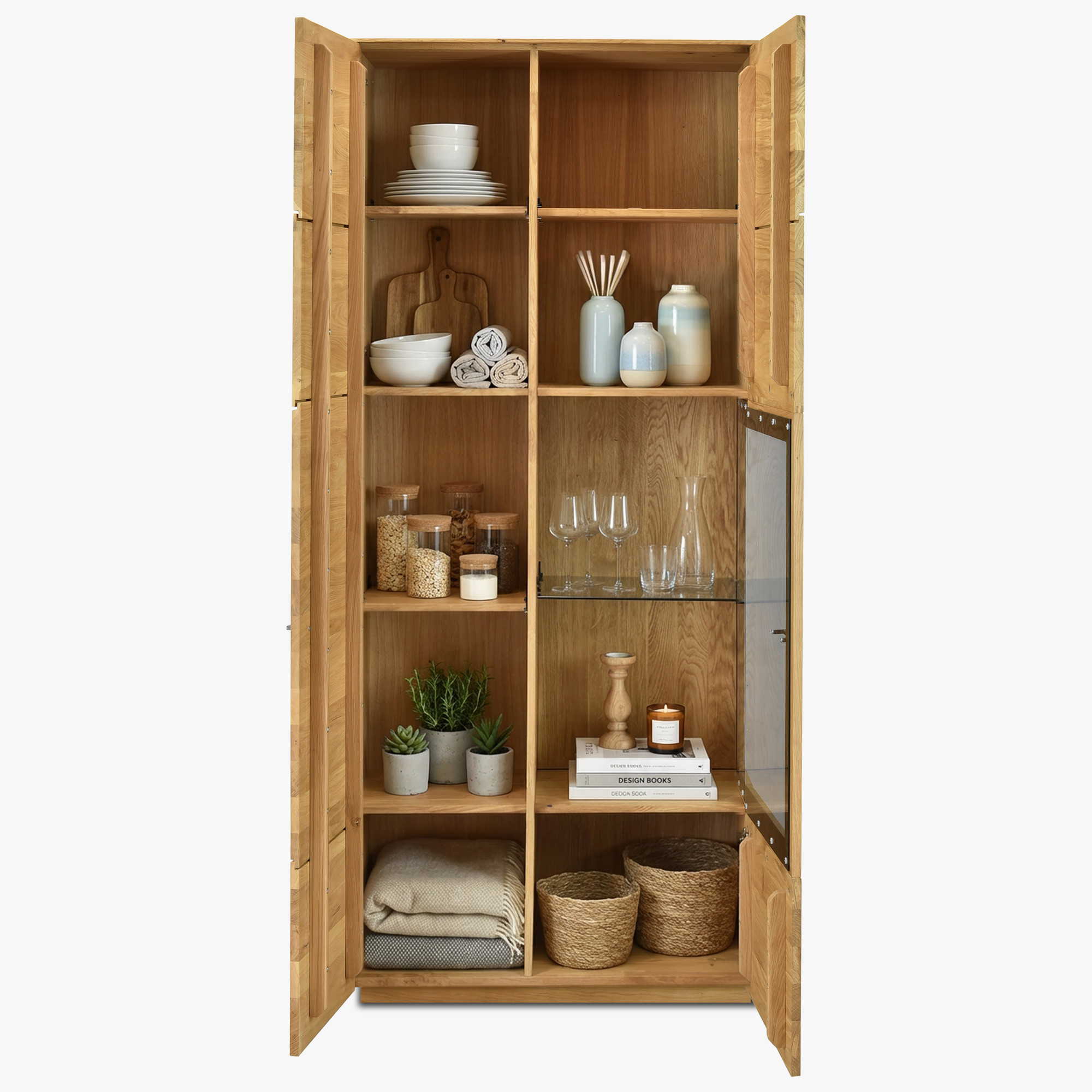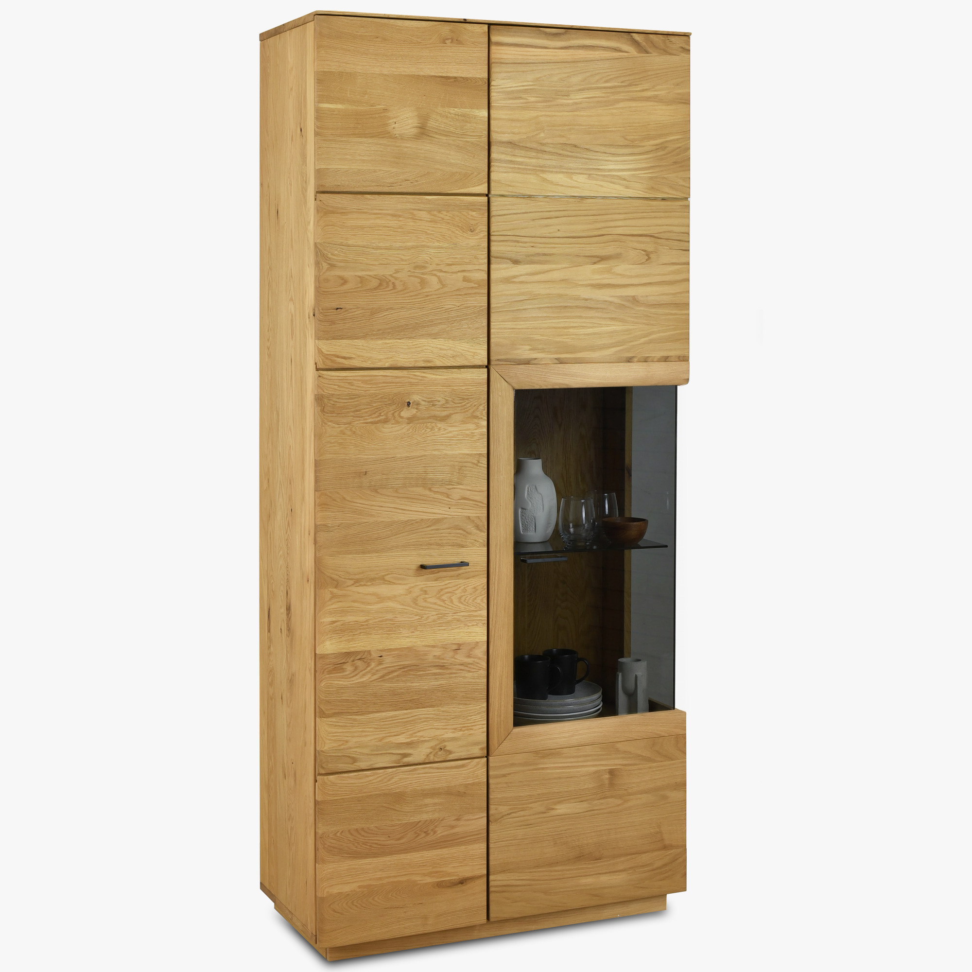 Vysoká dubová vitrína so sklom – do obývacej izby alebo jedálne