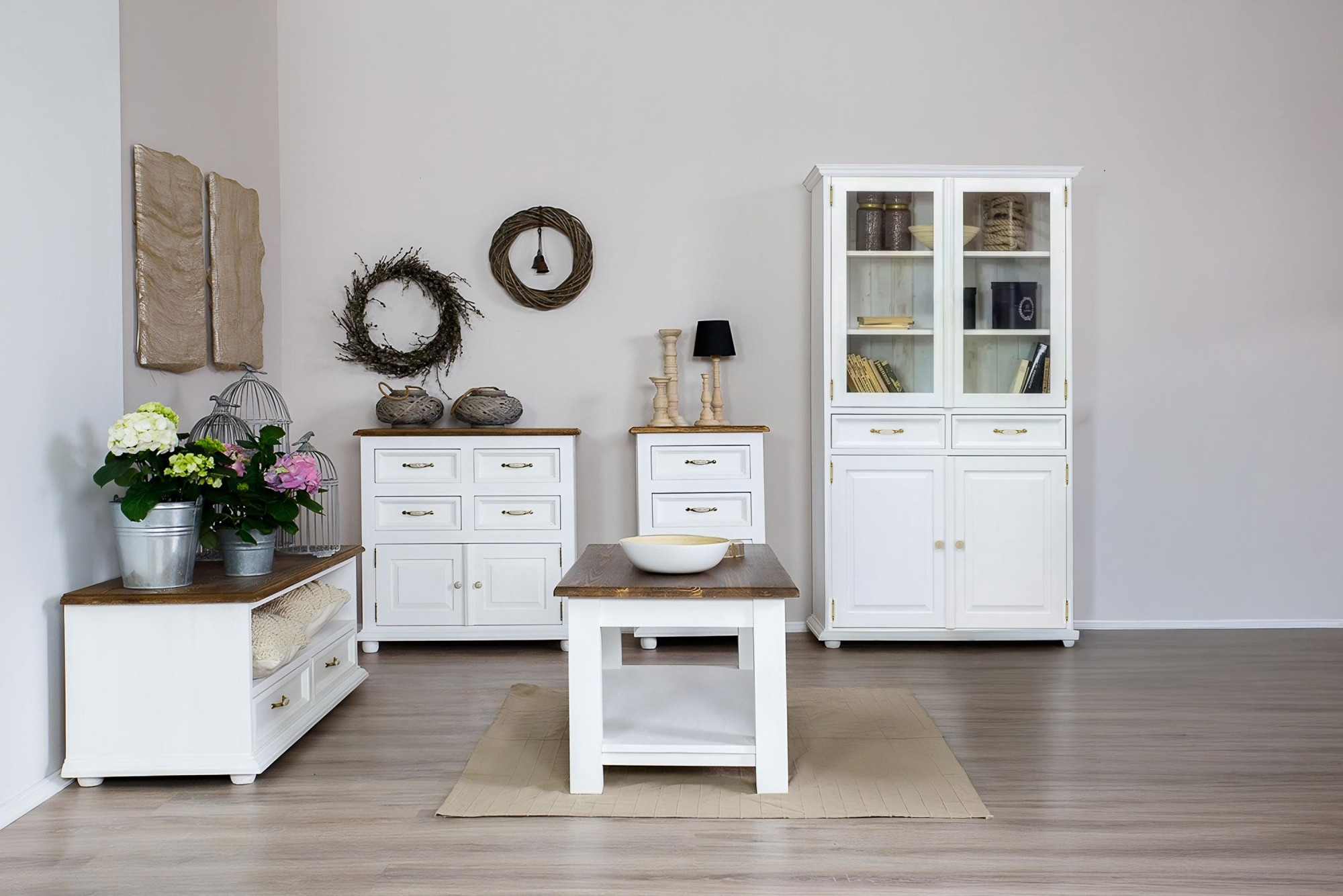 Ide o originálny masívny nábytok v štýle francúzskeho vidieckeho bývania, ktorý sa u zákazníkov teší mimoriadnej obľube. Vitrína je vyrobená z masívu borovice, vrátane zadnej steny. Každý kus rady Provence má úplne originálny vzhľad – domov si zaobstaráte jedinečný nábytok s dlhou životnosťou a nádherným dizajnom, ktorý zo svojej krásy nič nestratí ani po rokoch.
