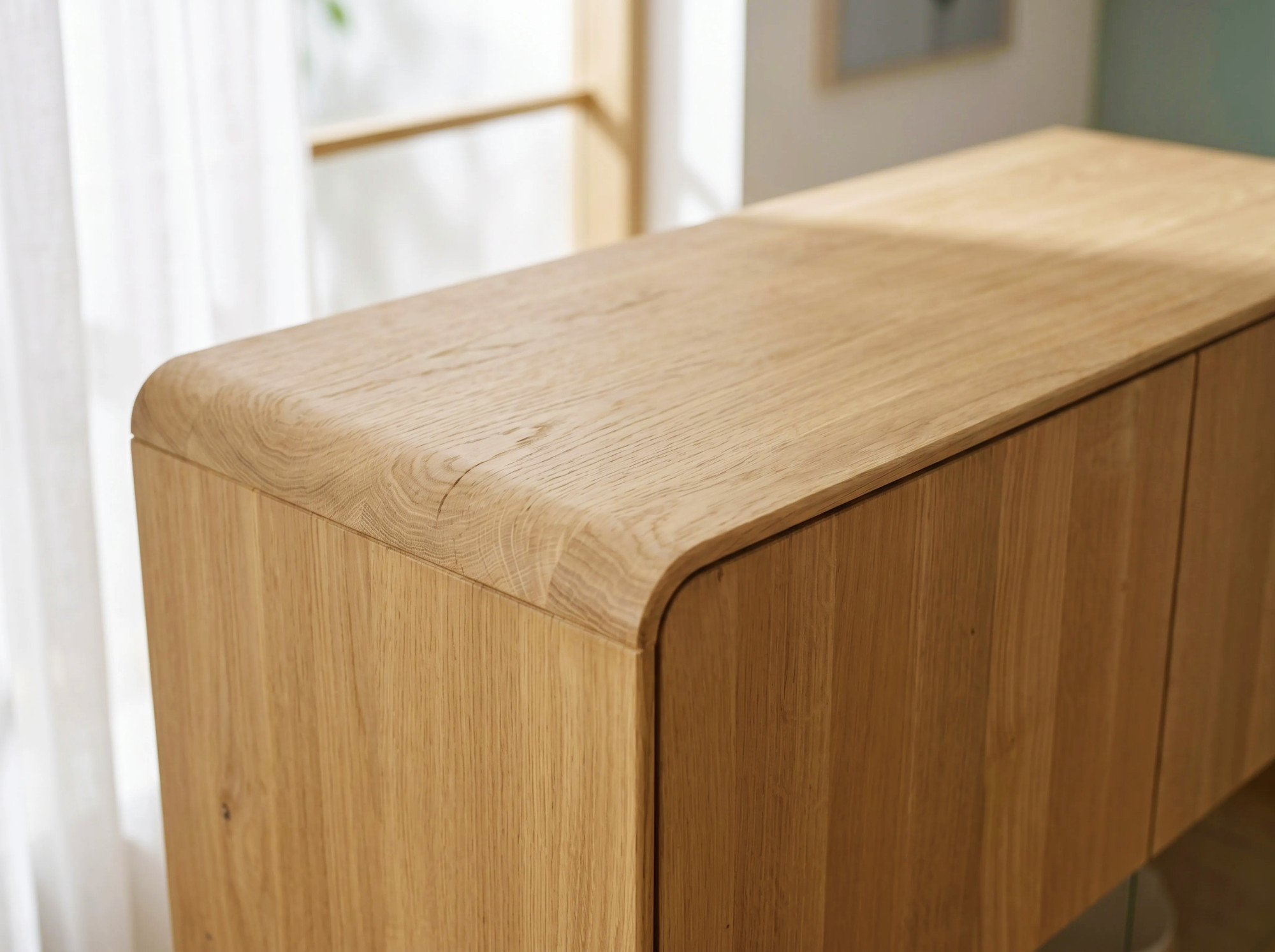 Povrch je ošetrený prírodným olejom, ktorý zvýrazňuje kresbu masívneho duba a chráni drevo. Olej umožňuje drevu dýchať a prípadnú renováciu zvládnete veľmi ľahko. - Ako sa starať o sklenené police a bočné sklo?